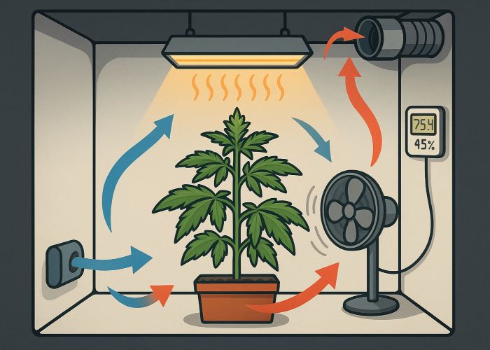 Летняя жара — не повод отменять гров, но и не время для халатности. Температура выше 30 °C в гроубоксе — это уже не просто погрешность, а системный стресс для каннабиса, способный снизить урожайность, ухудшить аромат, плотность и смолообразование. Но все это можно держать под контролем — без отчаянных мер и паники — если вы заранее выстроили правильную климатическую стратегию.